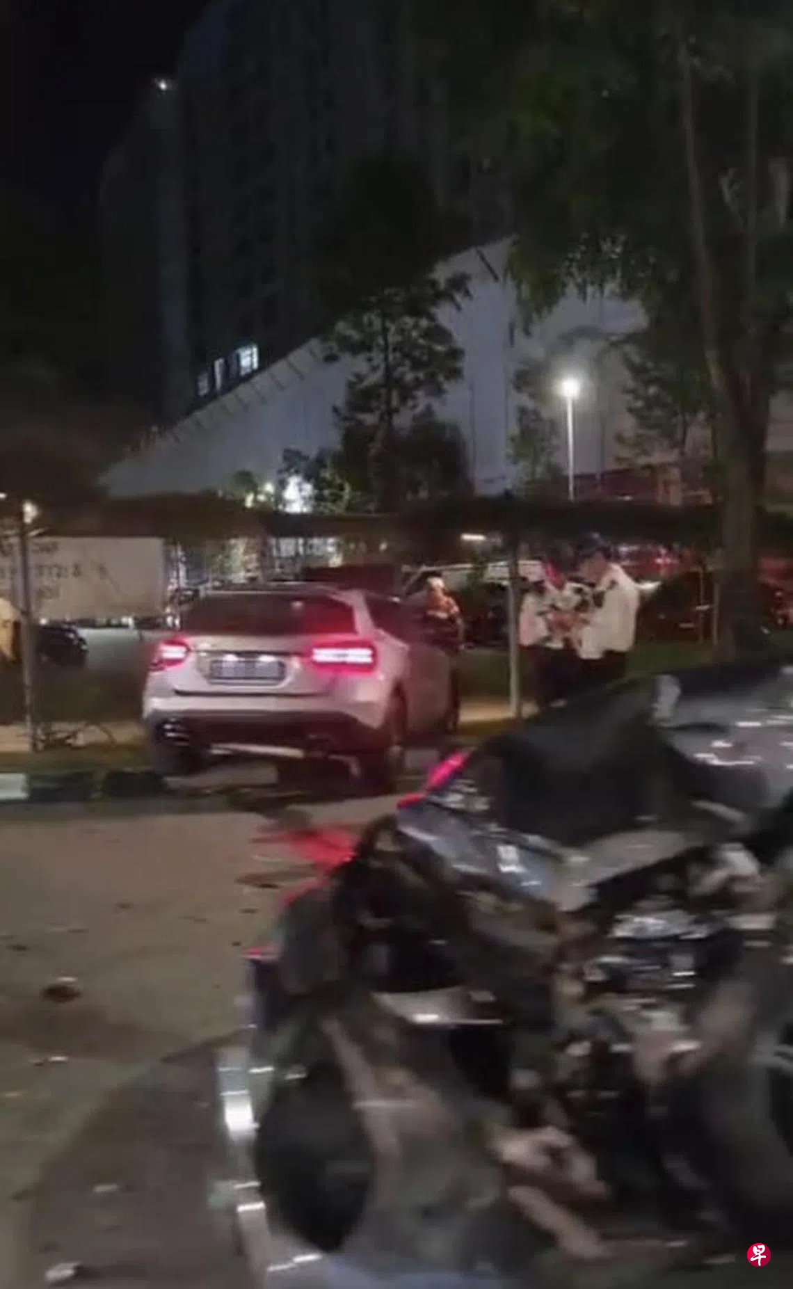不过,一旁的路堤结构仍看得出受损,草坪上则有两道明显的轮胎碾压痕迹,车身零件和车灯碎片等散落在周围。警方和民防部队受询时证实这起车祸,当局在晚上7时25分左右接获通报。