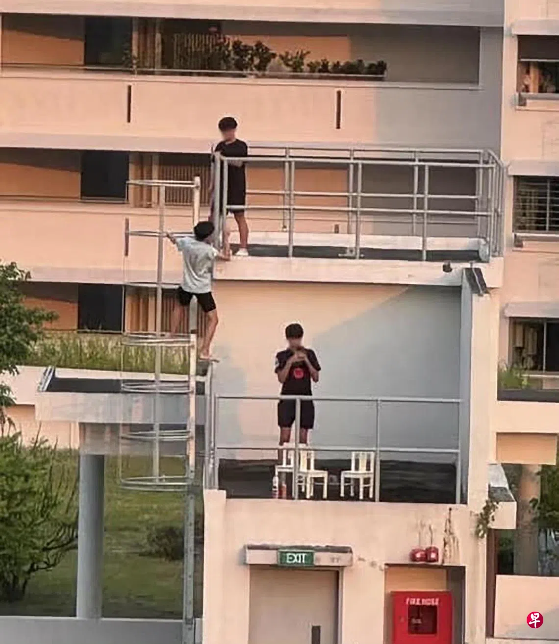 少年把组屋楼顶当作游乐场,爬过数米高的上锁铁梯,不仅搬椅子上天台坐,还被指抛掷物品下楼,警方介入调查。