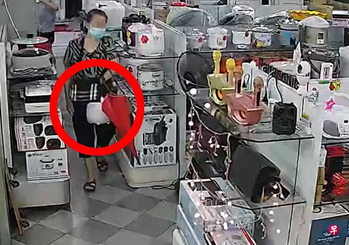 根据她提供的视频,阿嫂在店内徘徊后,提着一个白色电饭锅、一把雨伞和一个袋子走出店外,雨伞和袋子疑似用作掩饰。“我后来决定报警。”