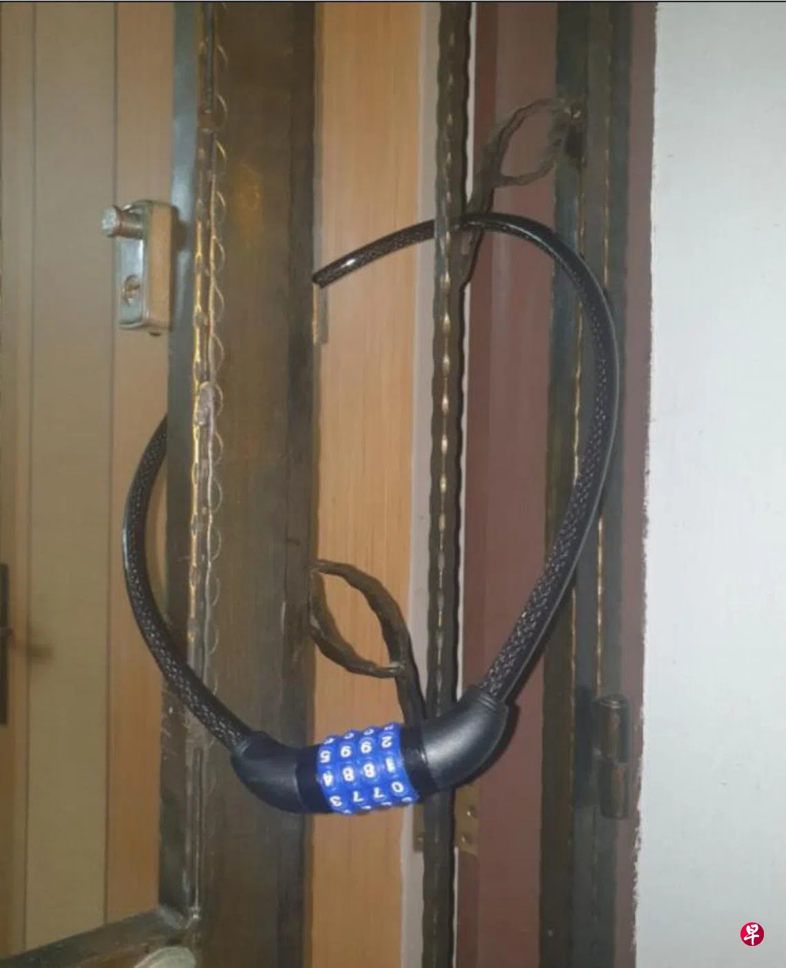 新加坡警察部队星期天(5月18日)发文告说,警方星期六(17日)凌晨约4时35分接获通报,指淡滨尼12街一处住宅单位发生大耳窿骚扰案,有人用脚踏车锁将涉事单位的铁门锁上,还在鞋架上留下讨债字条。