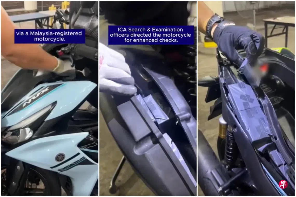 将漏税香烟藏在电单车的不同部位企图走私入境,移民与关卡局官员识破后,起获超过480包散装漏税香烟。