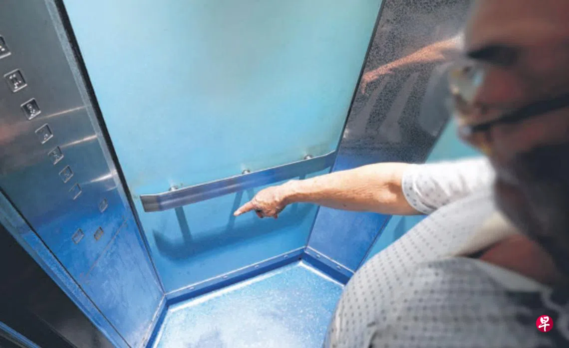 由于组屋共有四台电梯,曾先生为了避开恶臭,有时还拄着拐杖,改搭较远的电梯。记者日前走访时,电梯内确实弥漫着一股刺鼻异味。