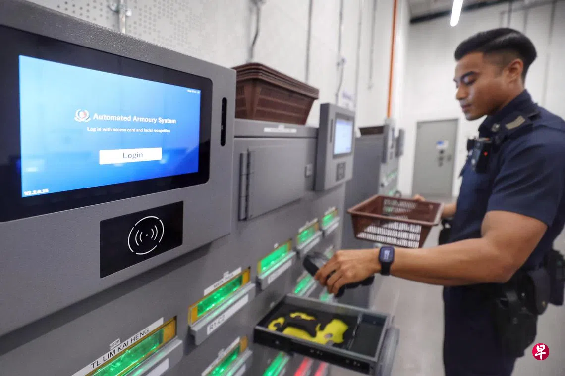 经过数年试行,警方星期天(5月25日)发文告透露,自动化系统目前已经逐步推广到全岛各个邻里警局。截至今年5月,自动化枪械发放系统已在四间邻里警局推行,而且预计会在2027年12月前逐步推广至其他警局。自动化装备发放系统则已在全岛34间警局中的30间推行,预计会在2026年6月前为所有警局采用。