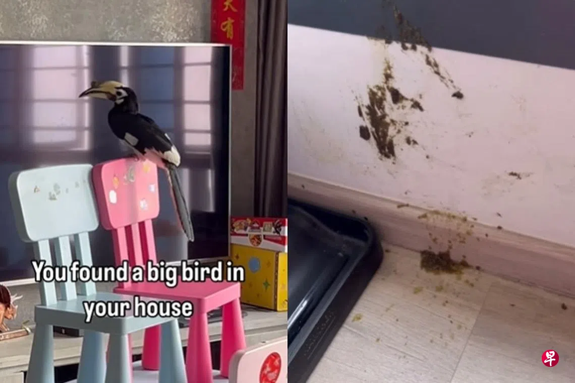 两只犀鸟飞入比达达利组屋单位,其中一只竟在客厅里撒尿拉屎,居民惊喜变惊吓。