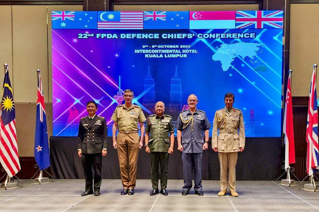 由新加坡、马来西亚、澳大利亚、新西兰和英国组成的五国联防安排(Five Power Defence Arrangements,简称FPDA),星期四(5月29日)中午在新加坡乌节康莱德酒店(Conrad Singapore Orchard)召开第23届五国联防军事首长会议。