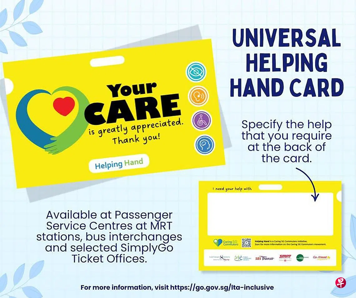 陆路交通管理局推出全新的“伸出援手卡”,有需者可通过卡片向公共交通人员和其他乘客求助。