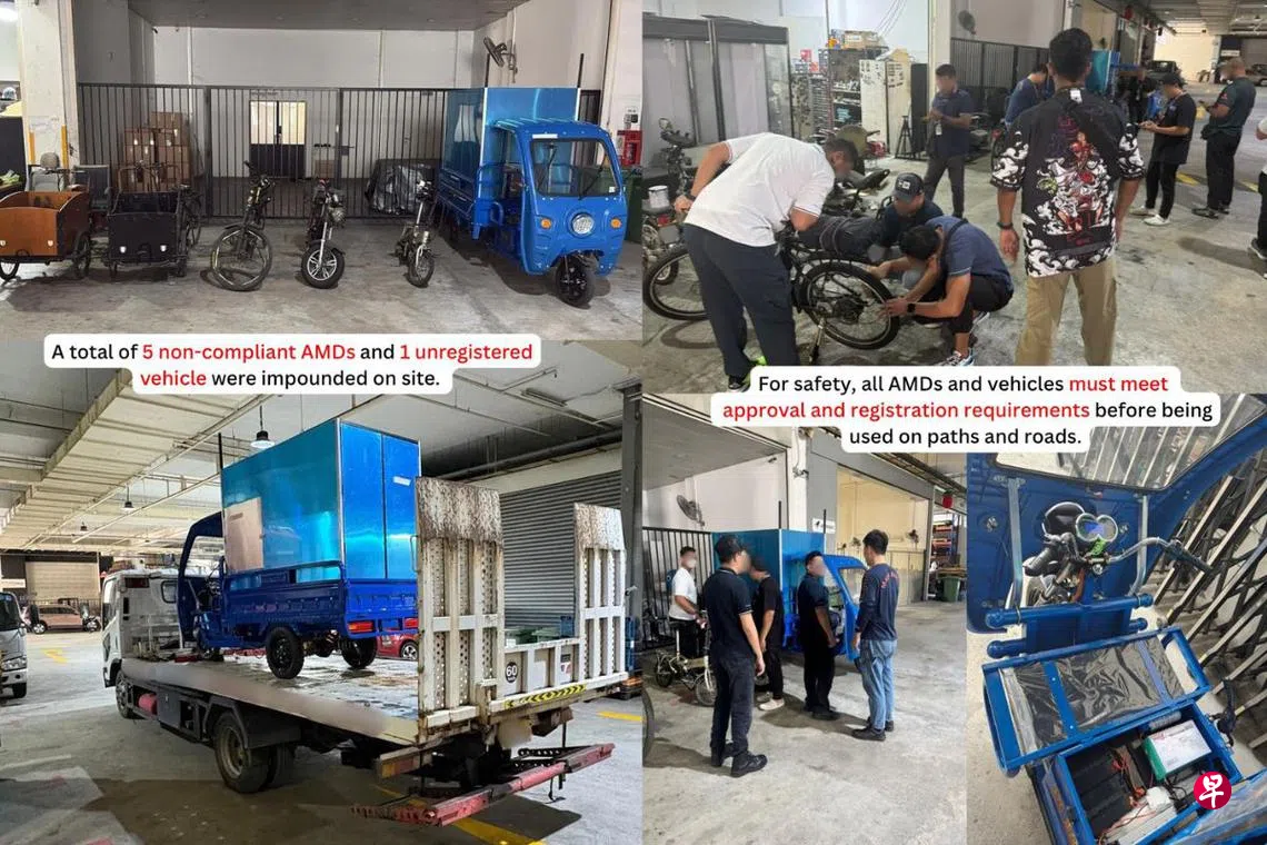 当局进一步调查后,也追踪到一名零售商,并从中起获五辆不符合规定的活跃通勤工具(Active Mobility Devices,简称AMDs)和一辆未注册车辆。