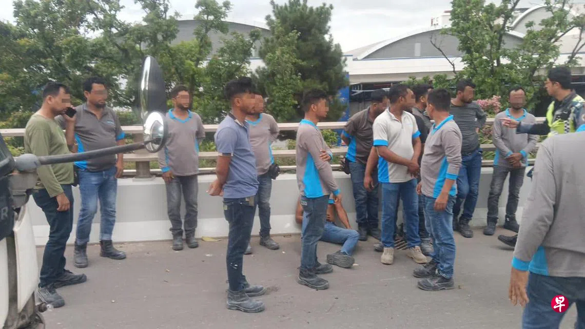 车祸发生后,至少14名客工在路旁逗留,伤势看起来并不严重。