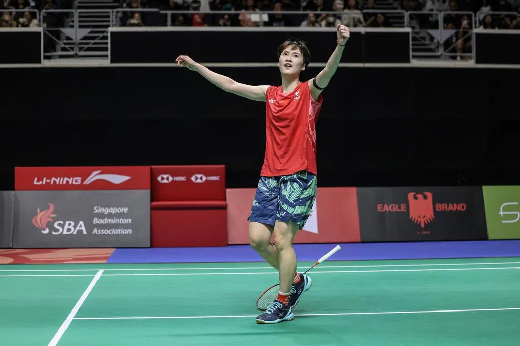 中国两位女将陈雨菲和王祉怡星期天(6月1日)在KFF新加坡羽毛球公开赛(超级750赛)争夺冠军,师姐陈雨菲直落两局完胜,获得本赛季第五个冠军。