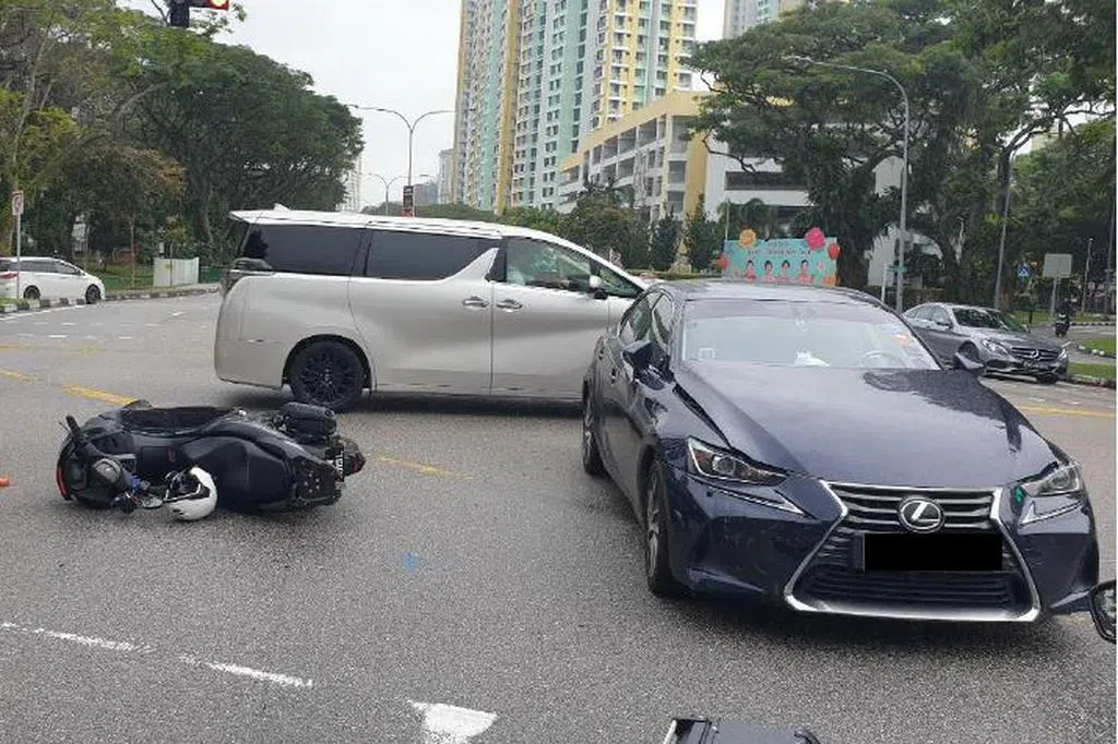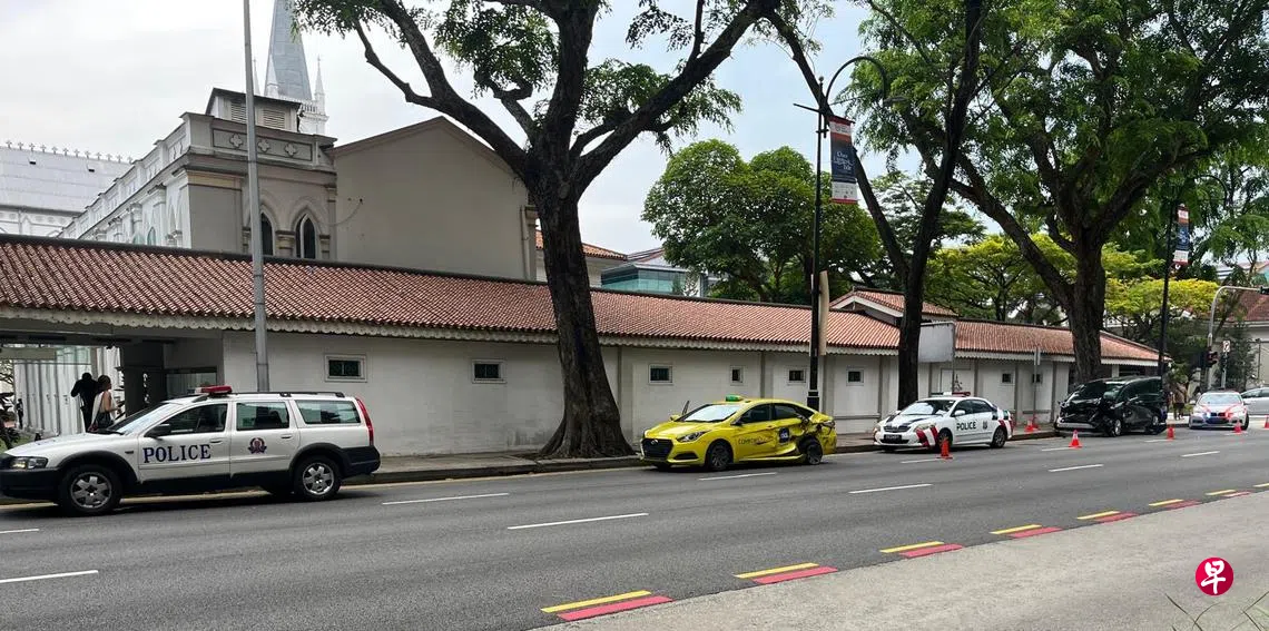赞美广场外发生11车连环车祸,有多辆车辆受损,包括三辆德士和两辆巴士,三人送院,调查还在进行中。