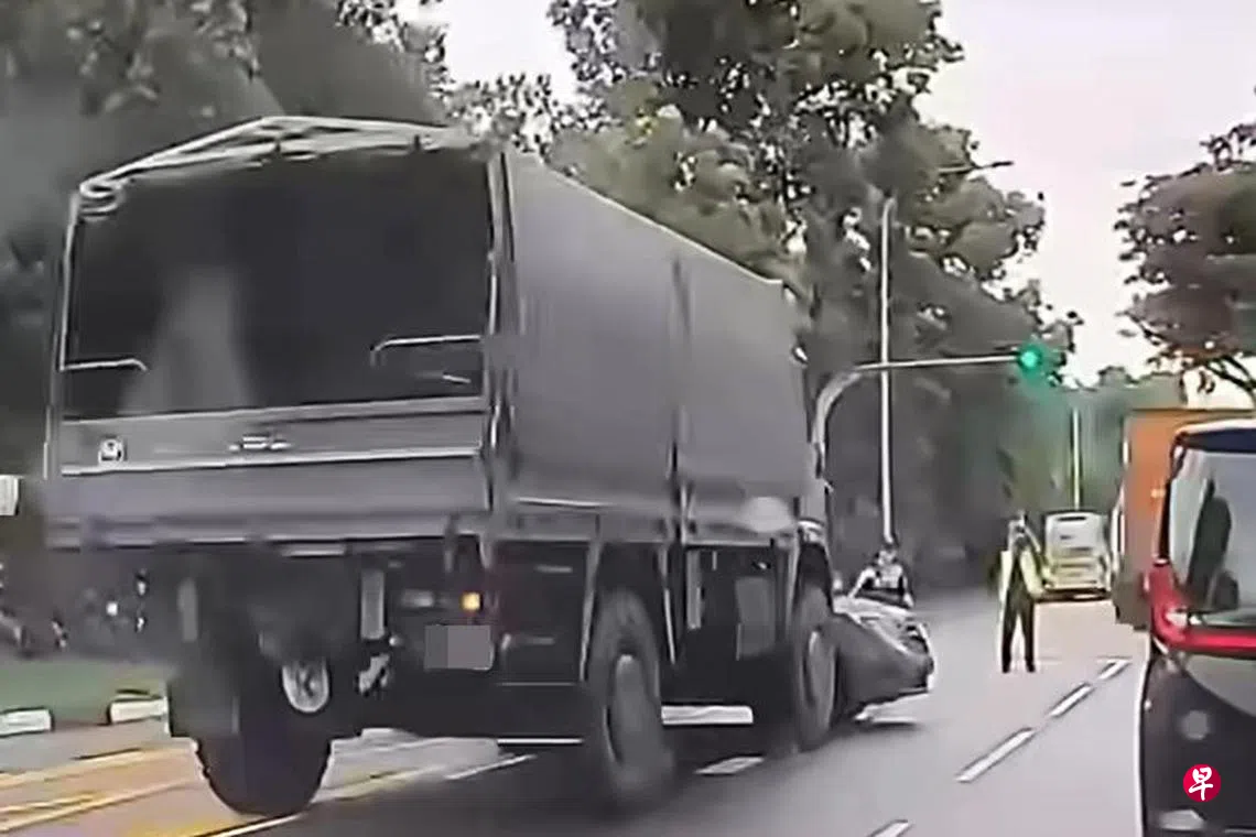 这起车祸发生在星期二(6月10日)早上7时,地点在樟宜东路上段前往新樟宜路上段方向。网络上流传的视频显示,一辆武装部队卡车和一辆小型货车相撞,交通一度受阻。