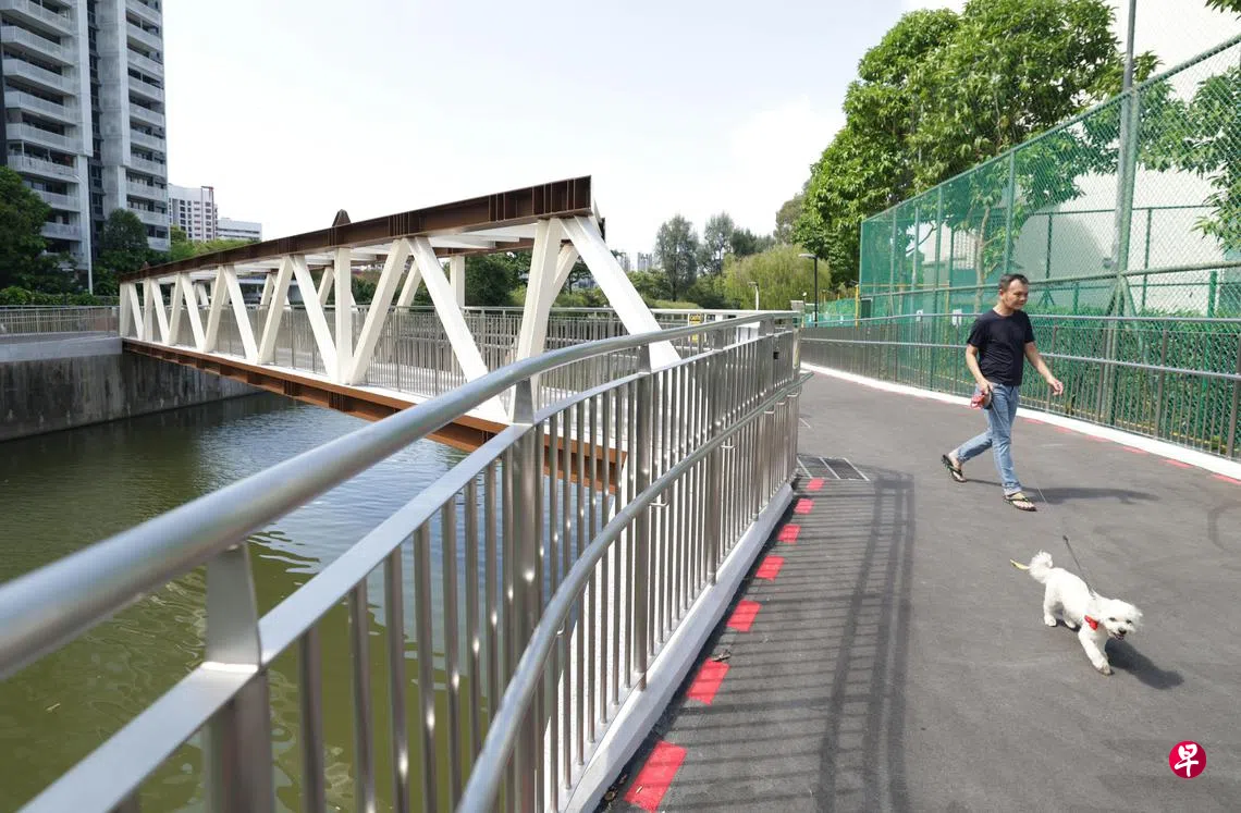 陆路交通管理局星期五(6月13日)在脸书贴文说,这座横跨湖畔双溪兰查(Sungei Lanchar)水道的人行桥,九成的建造材料来自原本位于玛丽蒙路的旧行人天桥。
