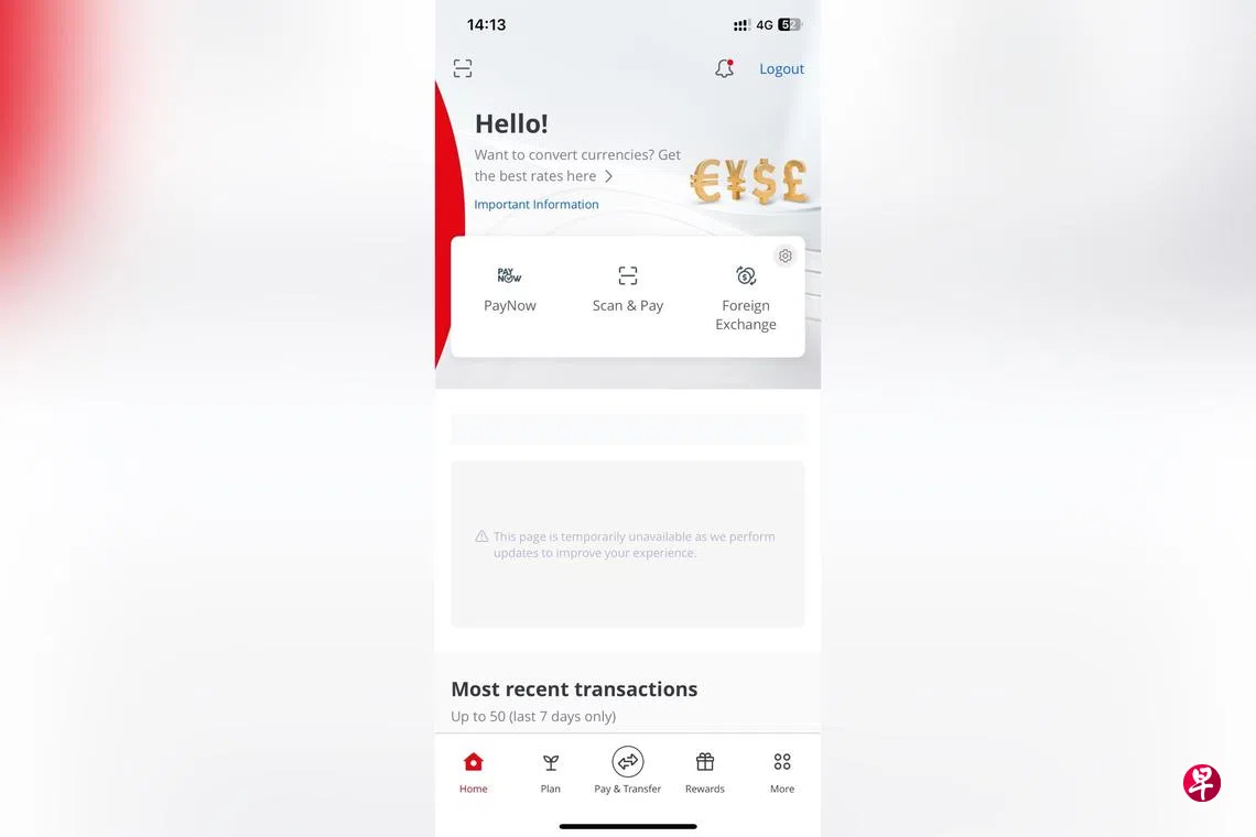 华侨银行的手机银行和网上银行疑似出现故障,部分用户无法转账或付款。