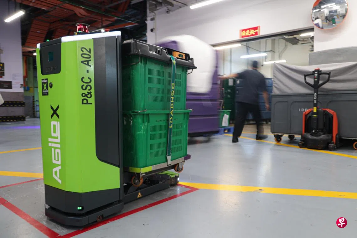 机器人可根据预设的运输路线自动行驶,并配有感应系统,能自动侦测周围环境,避开员工和障碍物,减少碰撞风险。