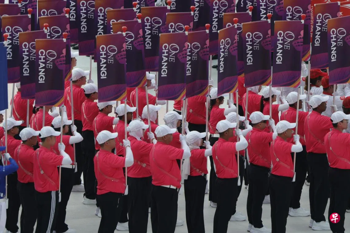 据《联合早报》了解,OneChangi国庆庆典检阅礼与仪式队伍有42人,包含在樟宜机场运营的九家公司职员。