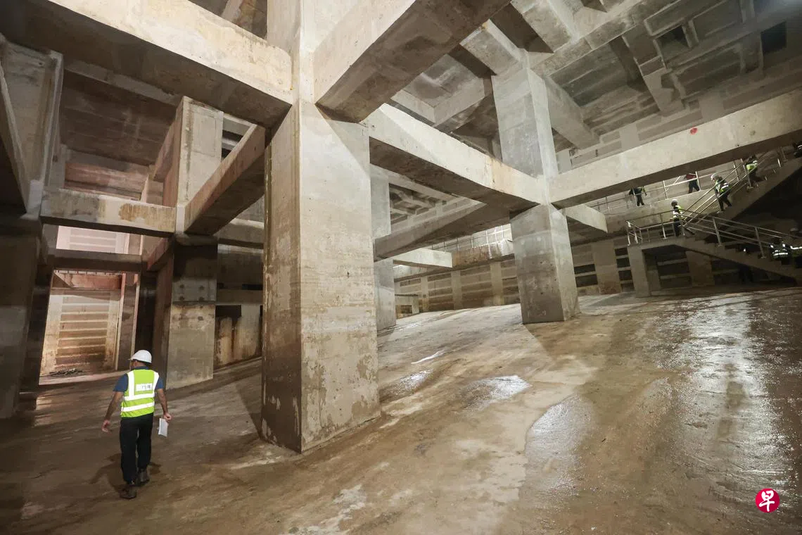 地下储水池约11米深,当水位达4.5米,水泵会自动启动,把水抽出排入梧槽水道下游,流向滨海蓄水池。