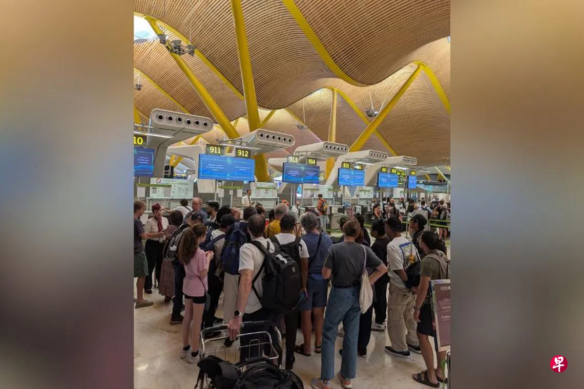 狮城教师游欧碰上中东军事冲突,原定从马德里返新的航班取消,隔天再飞时又在半空接获卡塔尔空域关闭的通知,被迫原机折返,至今滞留马德里超过48小时。