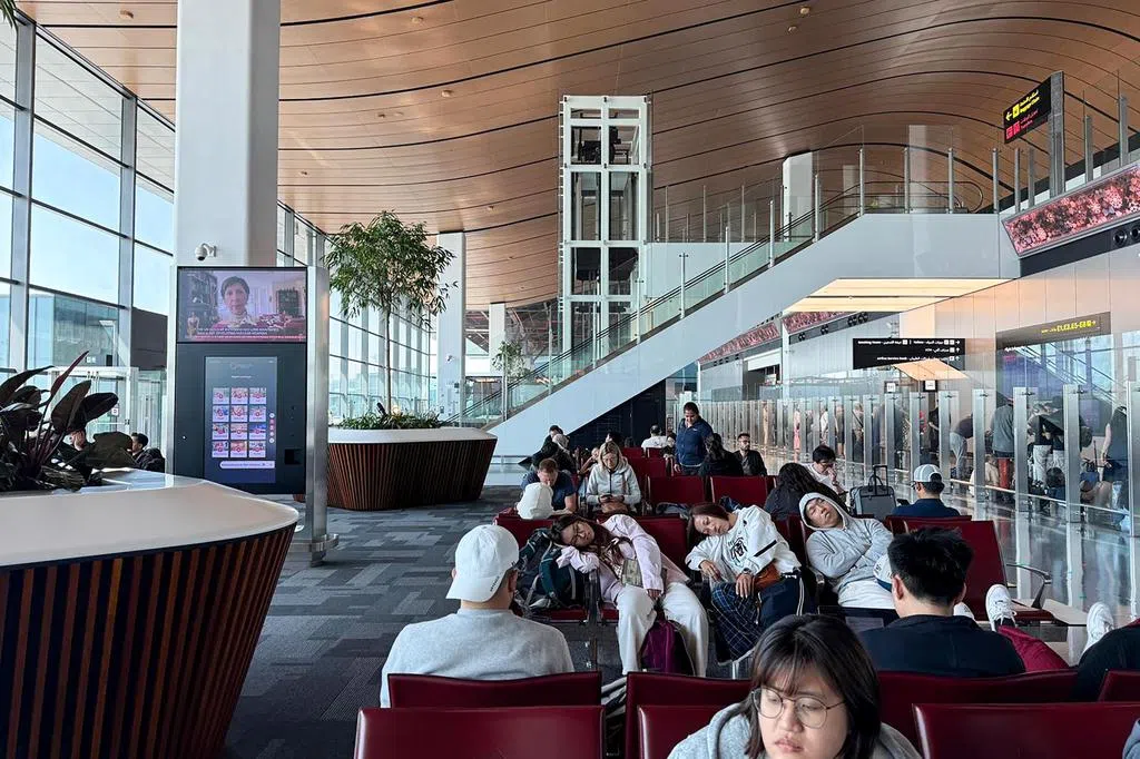 他22日抵达机场后得知航班取消,得改搭隔天经卡塔尔多哈飞新加坡的航班。