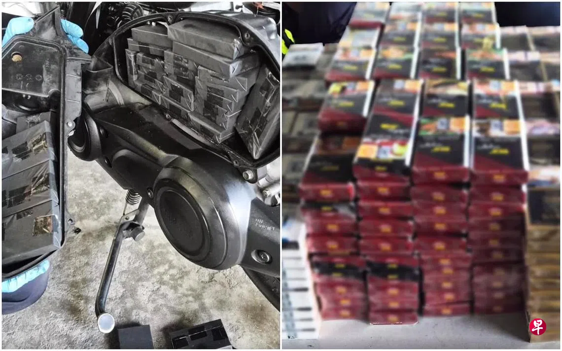 一辆电单车藏匿逾400包漏税香烟,移民与关卡局人员识破不法之徒的走私勾当,在兀兰关卡截停非法活动。