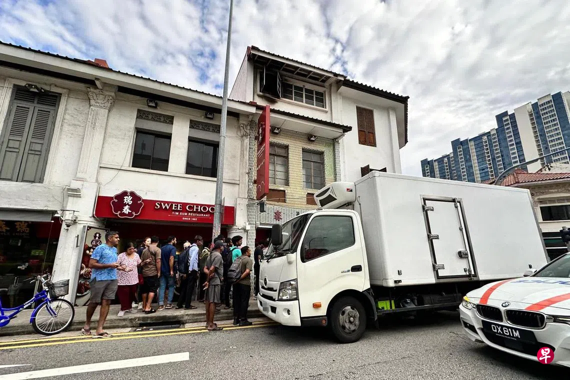 这起事件发生在星期天(6月29日)清晨,地点位于惹兰勿刹190号附近。根据《联合早报》读者提供的照片显示,现场至少有三辆警车和多名交警到场,知名的瑞春点心店前聚集了不少围观公众。