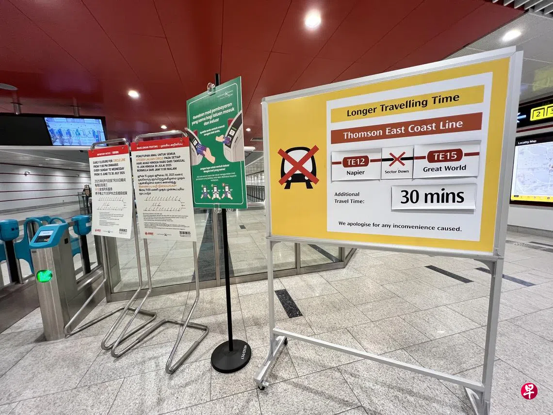 SMRT星期二(7月1日)早上6时55分在社媒发贴文说,汤东线列车清早开始运作时,乌节站发生信号故障,导致纳比雅(Napier)和大世界站之间的乌节站和乌节大道站没有列车服务。工程团队立即到场进行抢修。