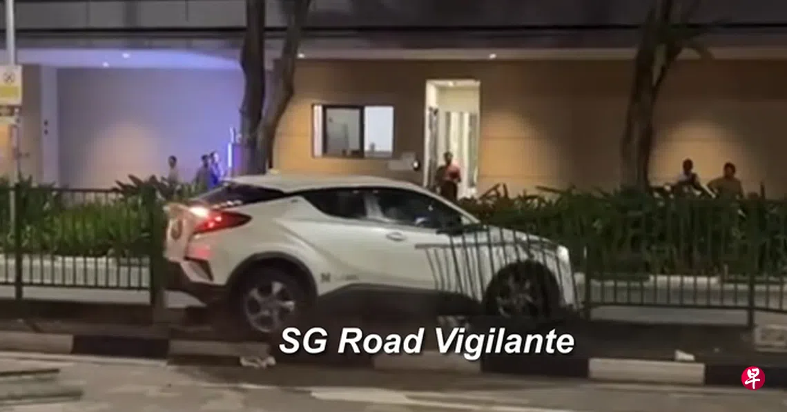 根据脸书星期三(7月2日)早上传开的一段时长约42秒视频,肇事的白色汽车在撞倒分界堤一排栏杆后,前轮已经悬空卡在分界堤上,但驾驶员没有下车,反而继续踩油门倒车。