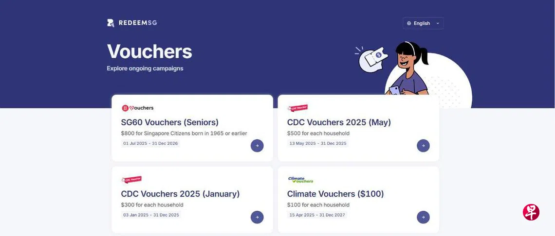 所有已成年的新加坡公民都将收到一张特别设计的明信片,公众可扫描明信片上的二维码来申领SG60礼券。二维码将引导公众前往SG60邻里购物券官方网站(即go.gov.sg/SG60vouchers)和RedeemSG网站(signup.redeem.gov.sg)。随后,他们会收到一条来自“gov.sg”的短信,内含专属的购物券链接。年长者或有需要的公众也可前往民众俱乐部或数码转型社区援助站寻求协助。