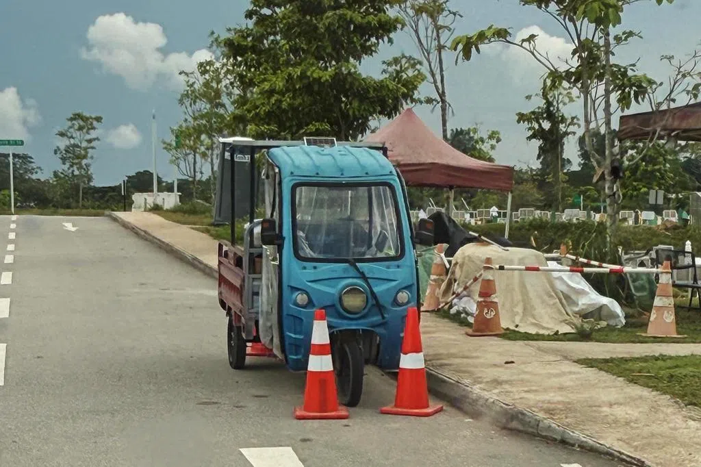 《新明日报》在5月时曾报道,林厝港的穆斯林坟场停车场以及路边停着类似泰国“嘟嘟车”的电动三轮车。这些三轮车停在路边或停车场,后方还可以放置物品。
