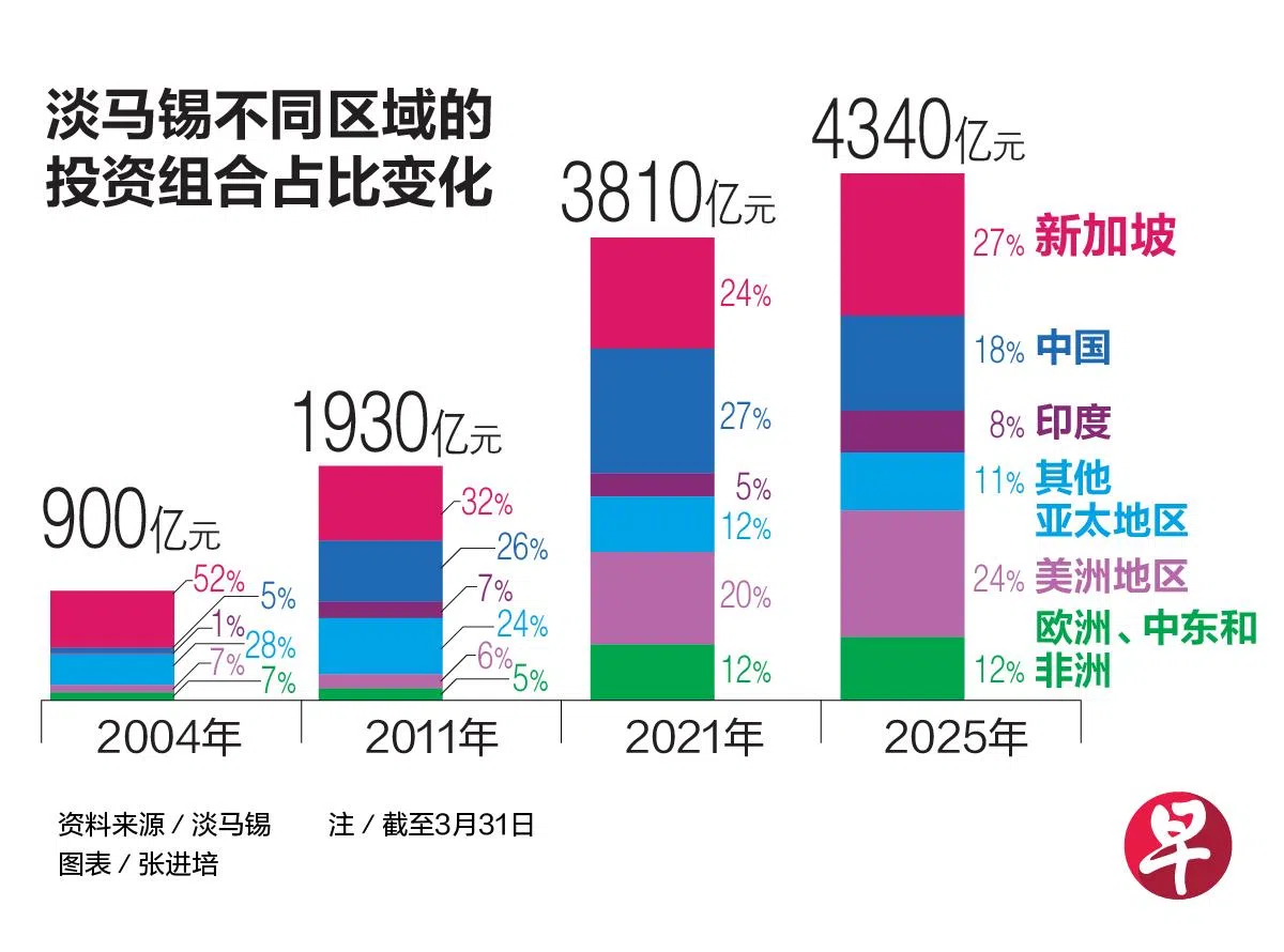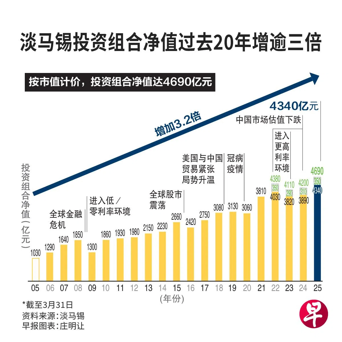 新加坡上市的投资组合公司,以及中国、美国和印度的投资表现强劲,推动淡马锡2025财年投资组合净值创历史新高,这一年大增450亿元至4340亿元。