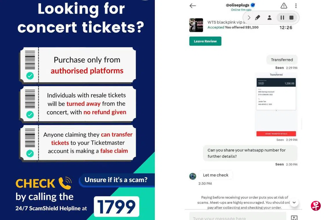 文告指出,受骗者多是在Carousell、小红书、脸书和WhatsApp等平台以及Viagogo.com等网站上看到门票转售信息。一些骗子会发布虚假售票广告,并附上伪造的门票截图或付款收据,博取信任。有些还会以“限时限量”为由,制造紧迫感,催促付款,并承诺稍后交票。在某些情况下,受骗者付款后迟迟未收到门票,骗子却谎称款项未到账,借机再次索钱。