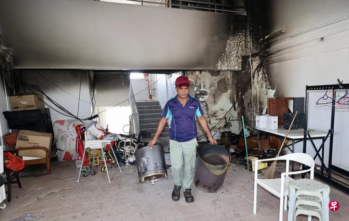 摄影记者上午约10时抵达现场时,火势已被扑灭,几名工人正在进行清理工作。火患也导致整座组屋断电,截至11时许记者离开时仍未恢复。
