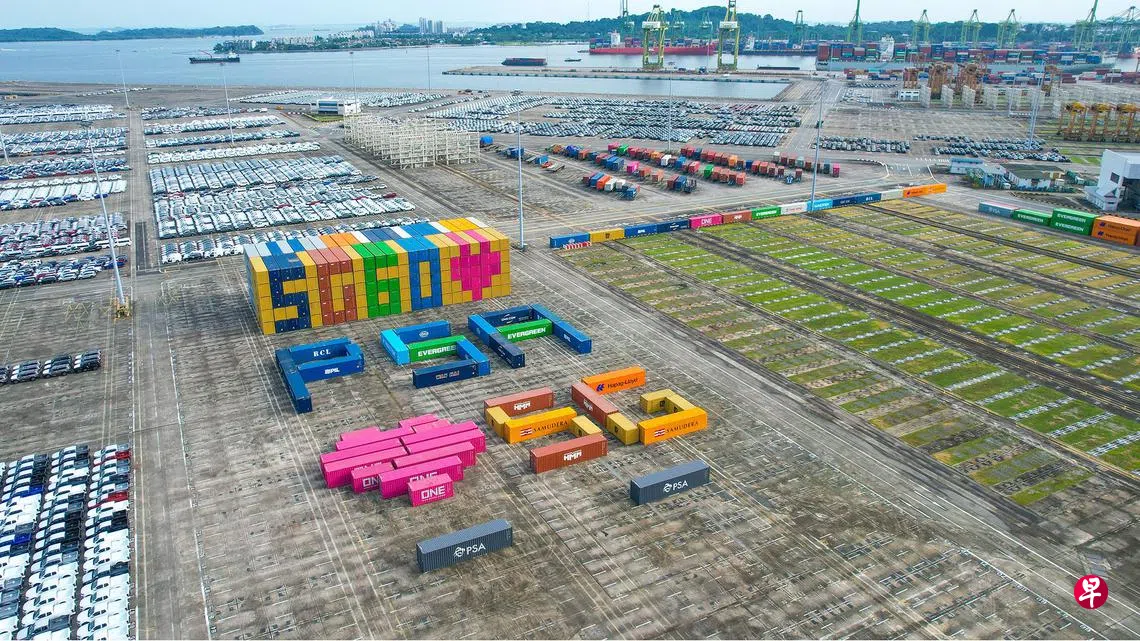 这份国庆礼物长101公尺、宽57公尺、高14.6公尺,历时超过32小时完成,并获得港务集团14家船务客户的鼎力支持,一共贡献271个集装箱。这象征海事业和供应链生态系统的精诚团结,以及对我国作为全球领先海事枢纽的持续支持。