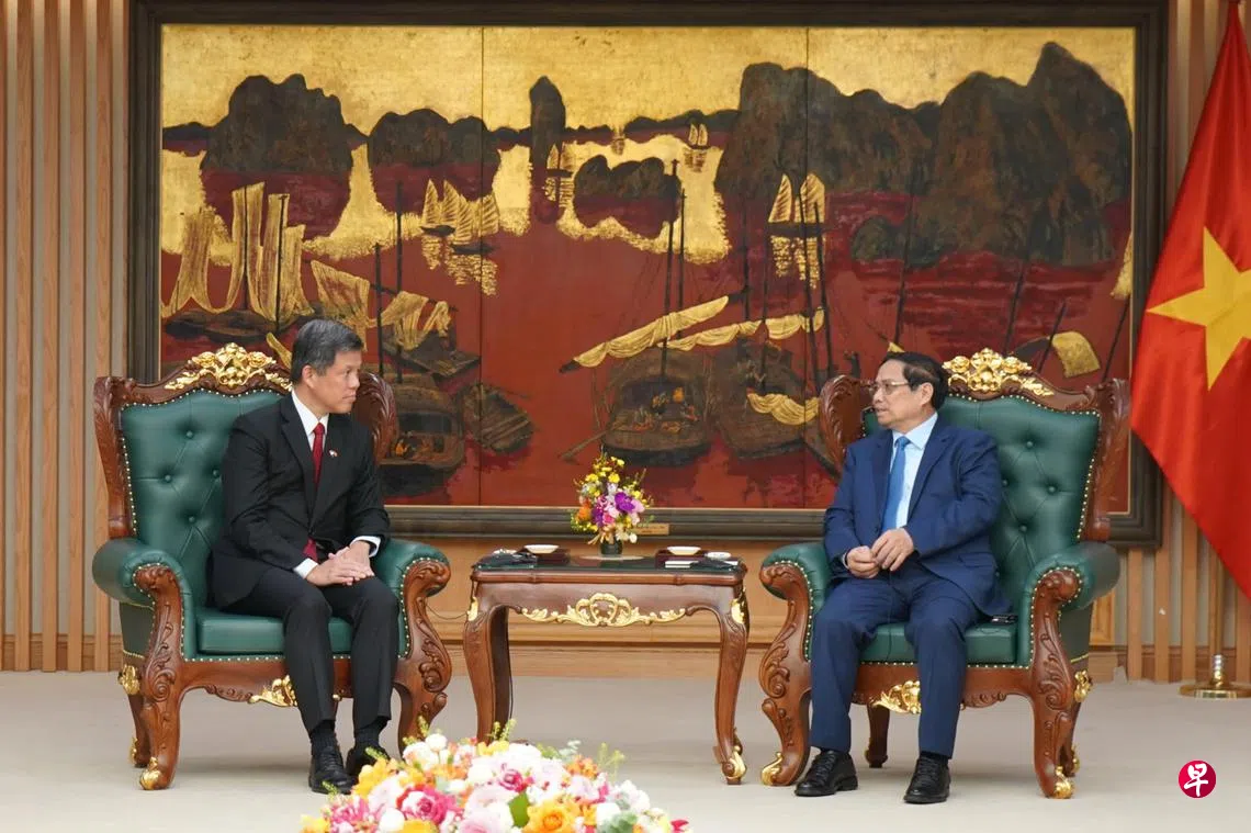 在越南首都河内访问的公共服务统筹部长兼国防部长陈振声,星期二(7月22日)分别同越南总理范明政和越南防长潘文江上将会面。参与会晤的包括国防部政务部长朱倍庆。