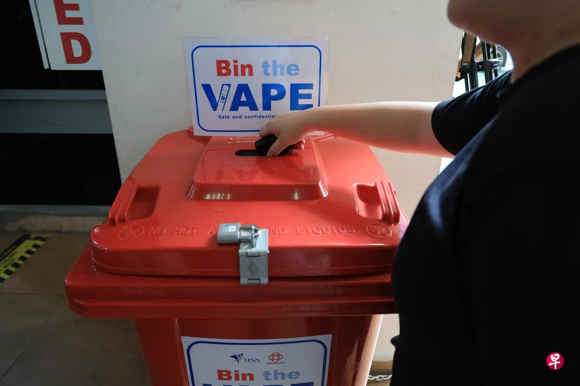 “丧尸烟弹”等电子烟引发连串社会问题,全岛各处的23个民众俱乐部和一个居民联系网中心将设立电子烟回收桶,鼓励烟民主动上交电子烟和配件,免受责罚。