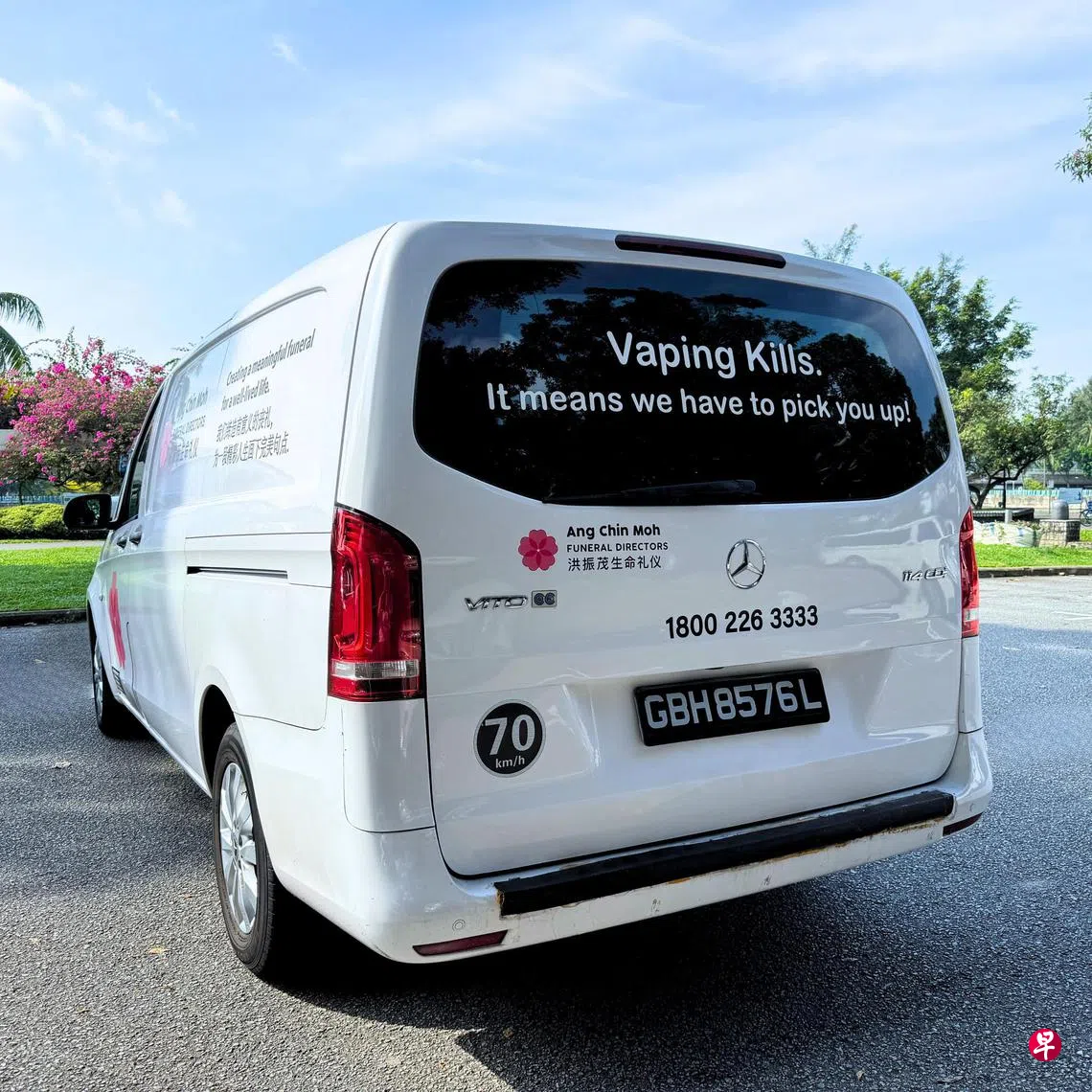 丧尸烟弹和电子烟新闻全城关注,有殡葬业者在灵车后方贴“Vaping Kills”警示语,劝诫他人勿吸电子烟。