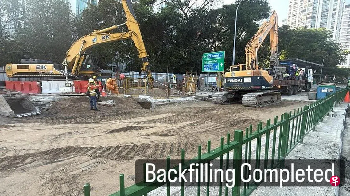 丹戎加东地陷坑洞的回填工作已经完成,陆路交通管理局接下来将进行检测,确保土壤中没有空隙才会重新铺设道路。