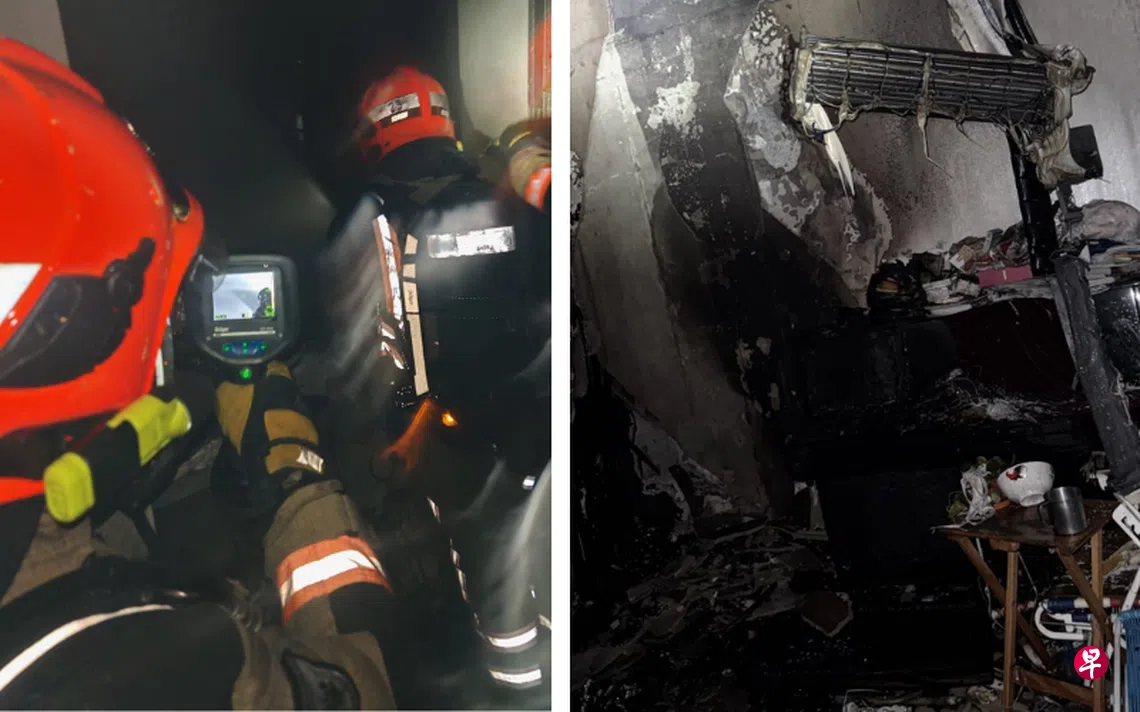 新加坡民防部队星期三晚上在脸书发文说,消防员到场后发现16楼一个单位的客厅失火,于是破门进入,用水枪将火势扑灭。
