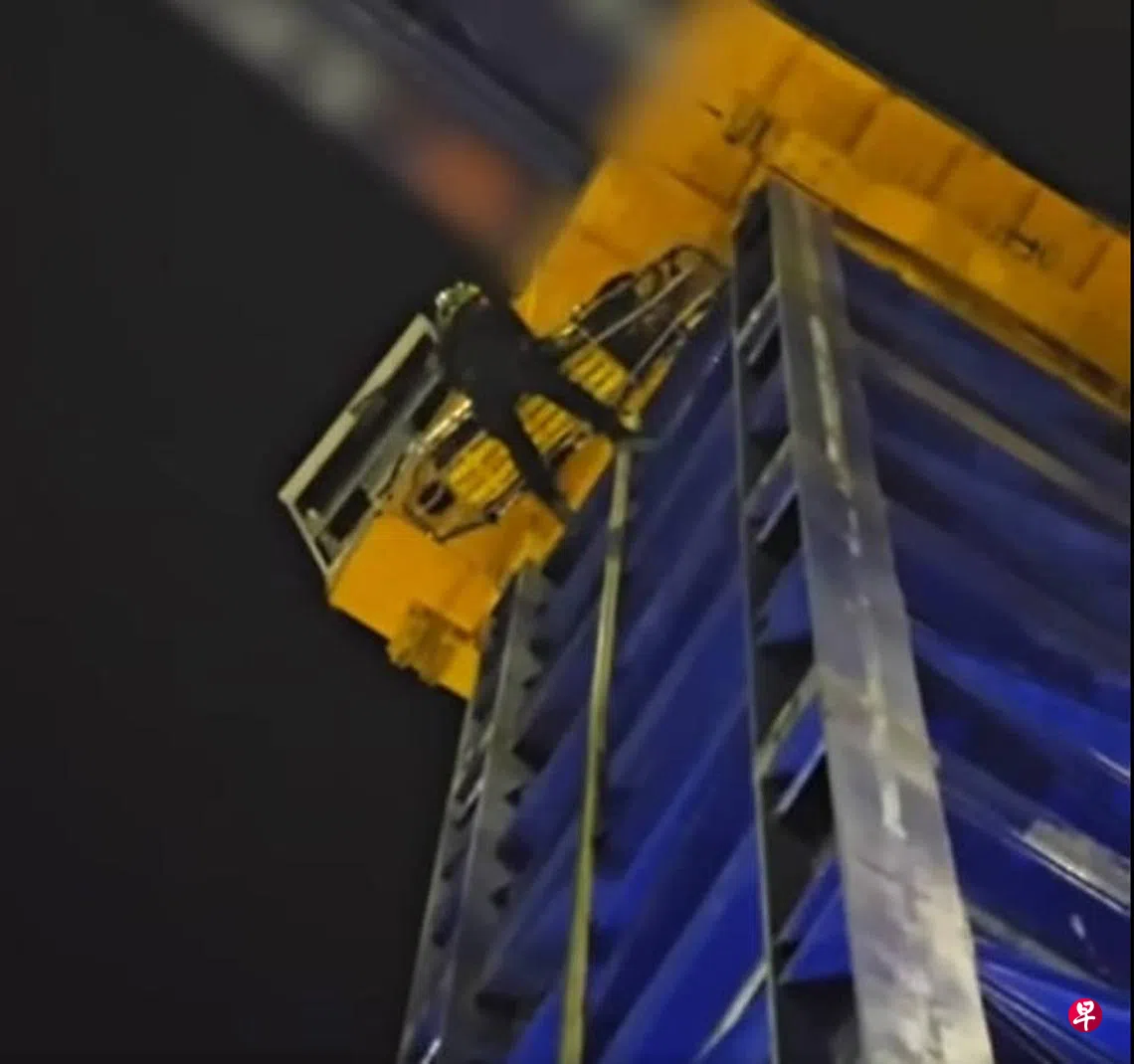 一名工人在塔式起重机的高台上进行高空作业时,突然身体不适,受困在30米高空。新加坡民防部队接获通知后,派人到现场展开高空救援。