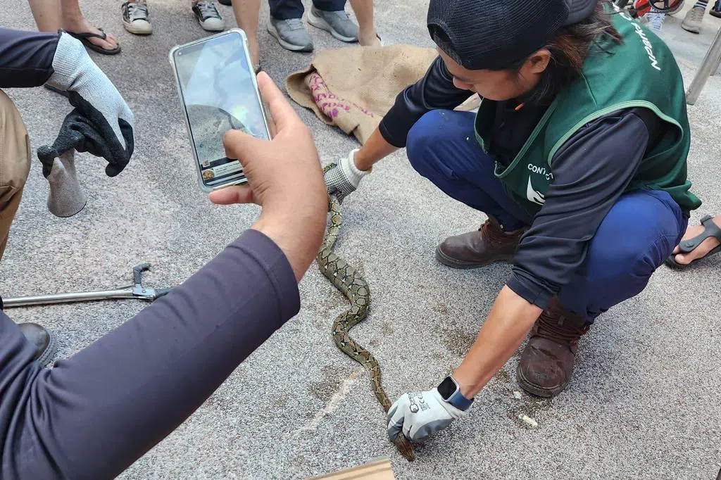 他说,当时有好几名路过的热心公众上前帮忙,包括英勇擒蛇阿叔。