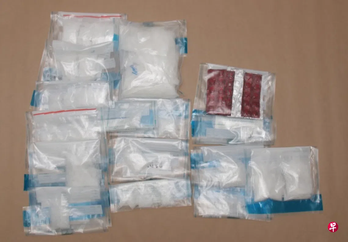 同时,另一名41岁新加坡男子则在惹兰加由附近住所因涉毒被捕。执法人员事后从住所搜出约158克冰毒及九克爱它死药丸。
