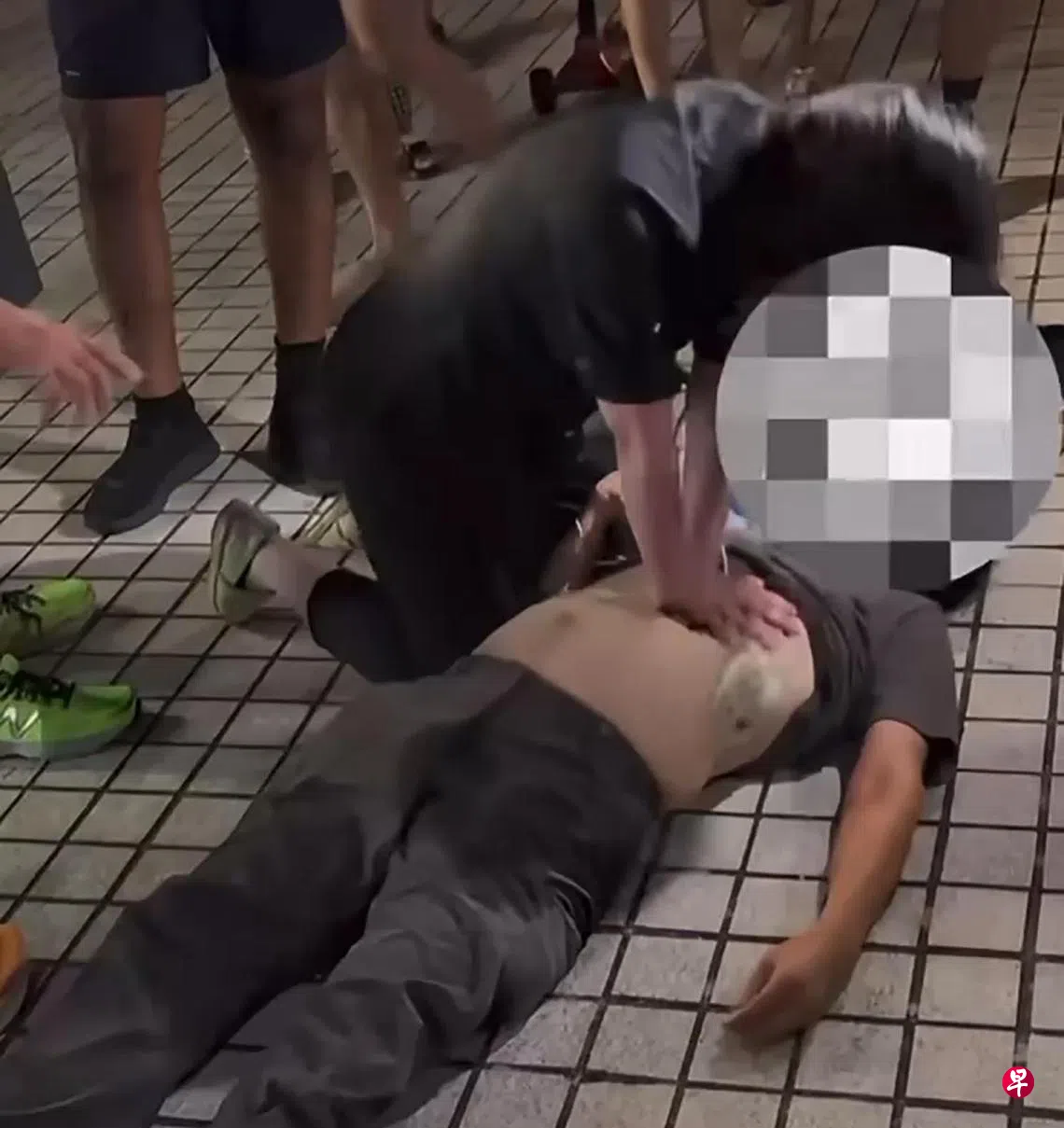根据网民所上载的视频,一名年轻女子正在帮男子做心肺复苏,旁边则有一名女子正在帮忙数节拍。