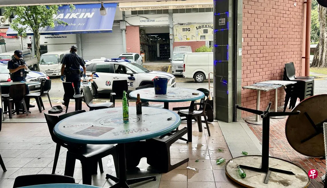 《新明日报》报道,大巴窑工业区9号咖啡店星期天(24日)早上发生暴力冲突,两帮人马逾10人斗殴,挥拳相向、桌椅怒砸、持刀砍人,酒瓶碎片散落一地,惊动大批警员到场。