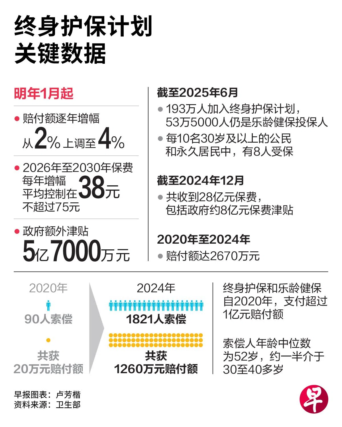 终身护保计划推出五年后首次检讨,终身护保理事会星期三(8月27日)公布检讨报告,并提出四项建议,以加强终身护保计划。卫生部说,政府已接受理事会提呈的建议,这一系列调整将于2026年1月起落实。