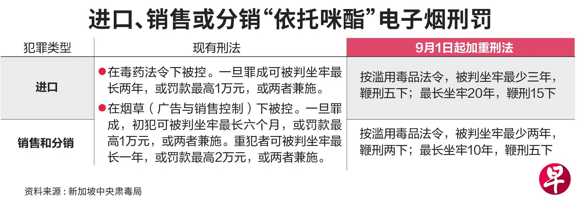从9月1日起,依托咪酯正式列为C级毒品,暂定为期六个月。政府将加强跨部门协作,全面加大对电子烟滥用者和供应商的执法力度。除了提高吸食电子烟和依托咪酯的刑罚,政府也给予违例者第二次机会,加强强制改造措施。