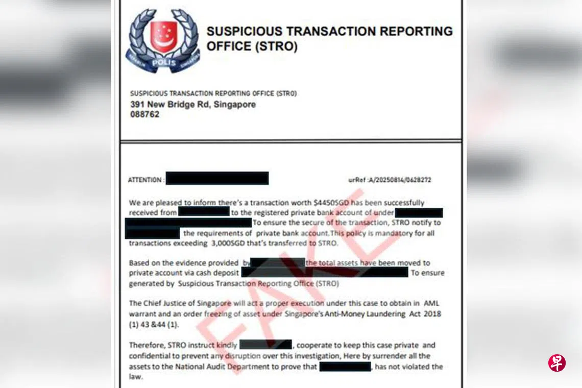 新加坡警察部队星期四(8月28日)发文告说,这类受害者一般会收到陌生来电,视频电话另一头的骗徒会冒充商业事务局旗下可疑交易报告办公室(Suspicious Transaction Reporting Office,简称STRO)的人员,除了出示伪造的警员证件、身穿假警服,或在背景展示假警徽,甚至还会报上真警员的名字,以假乱真。