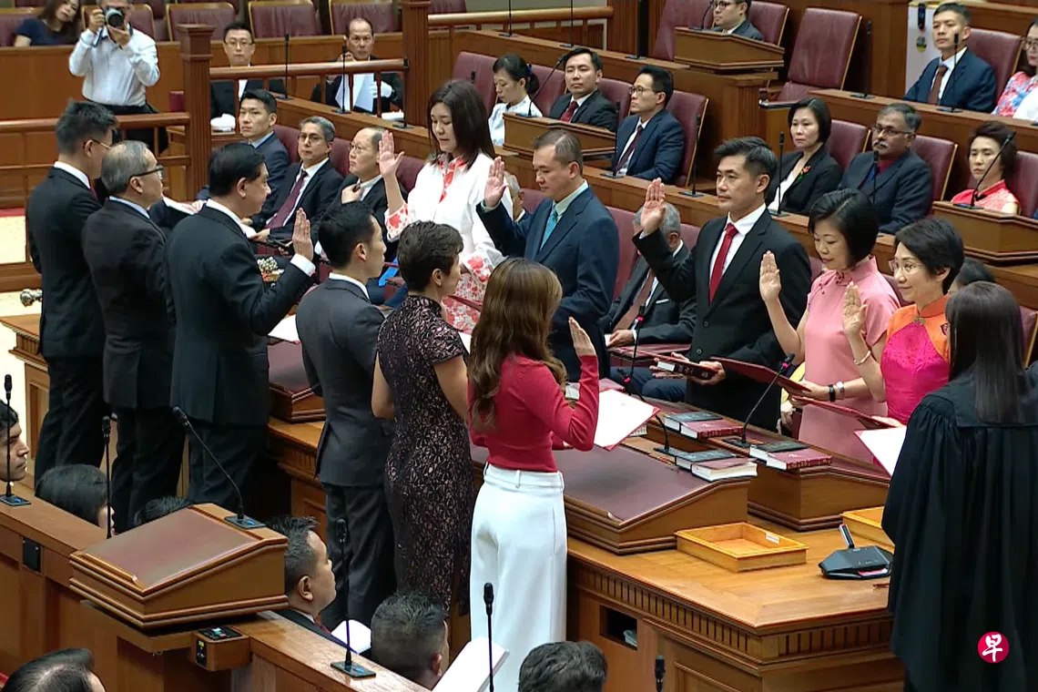 用淡米尔语宣誓的议员分别是文化、社区及青年部兼人力部政务部长迪内希、三巴旺集选区议员维凯,以及西海岸—裕廊西集选区议员贺明医生。