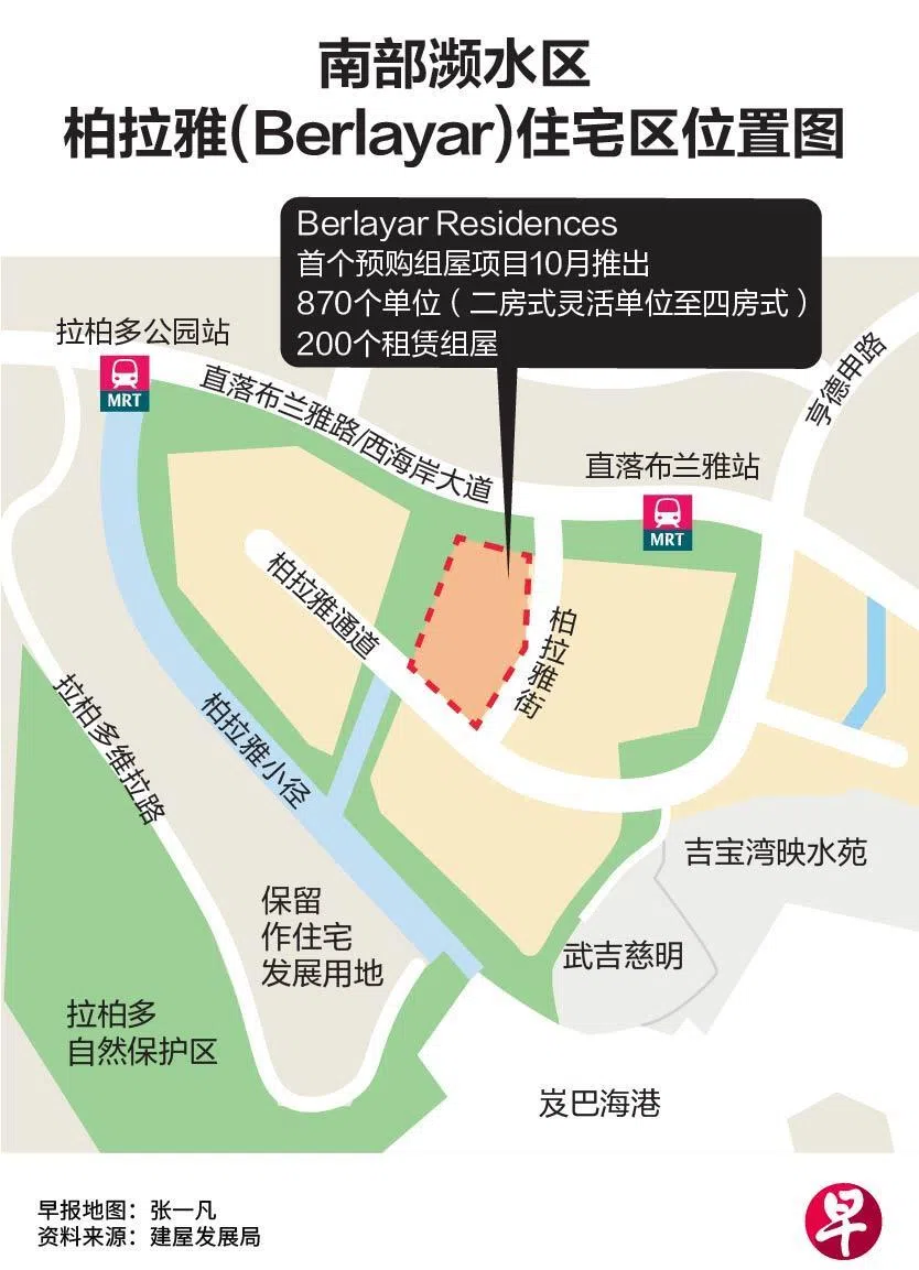 我国南部濒水区首个预购组屋项目“Berlayar Residences”将于10月推出,提供约870个二房式灵活单位至四房式单位,以及200个租赁组屋单位。