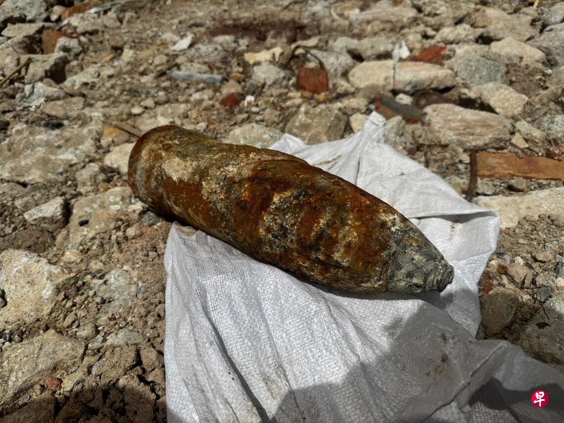 在场的承包商林先生受访时透露,约两三天前挖出一枚疑似炮弹的生锈铁物,但因为不确定是何物,因此只是先放在一边,直到星期二才上报给当局,请求当局来查看。