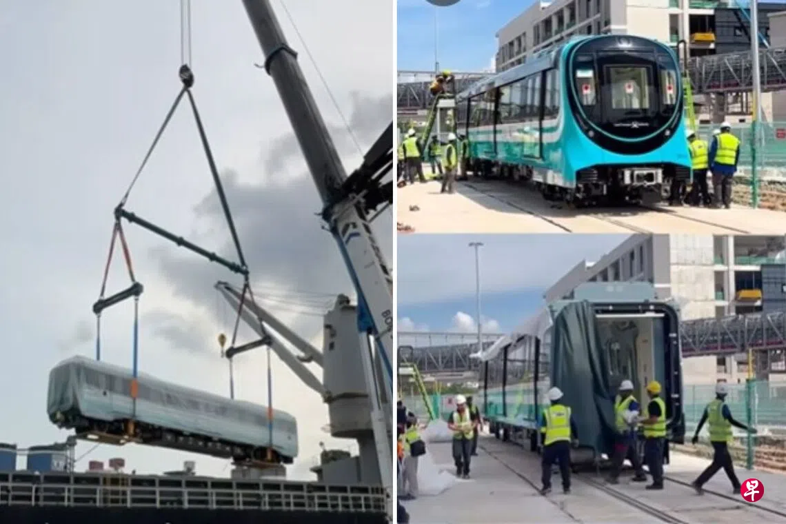 陆路交通管理局星期四(9月25日)在脸书发视频说,新列车已从韩国送抵裕廊港口。