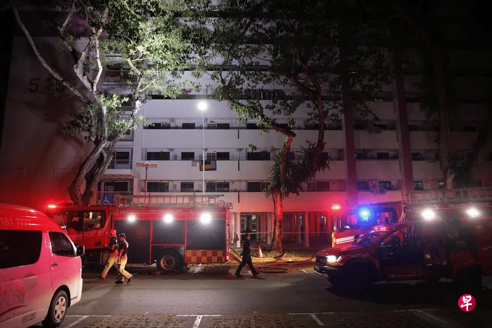 据了解,事发后,数十名组屋居民疏散,全部聚集在组屋楼下的空地。另有几人坐在救护车附近等待医护人员评估,其中包括一名幼童。
